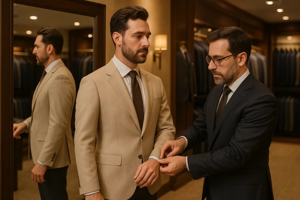 Phoenix’s climate allows creativity with layering. In fall and winter, pair your beige suit with a fine-gauge turtleneck, dark tie, or wool overcoat. In summer, lightweight fabrics like linen or cotton keep your look breathable. The versatility of the beige color suit ensures it works seamlessly year-round when styled thoughtfully.